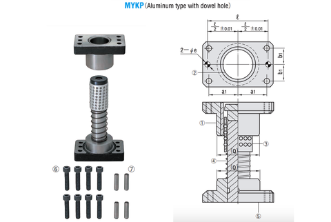 Bộ dẫn hướng MYKP có bi gắn đế - Sử dụng trong khuôn đột dập kim loại, khuôn dập có cường độ làm việc cao, khuôn liên hoàn
